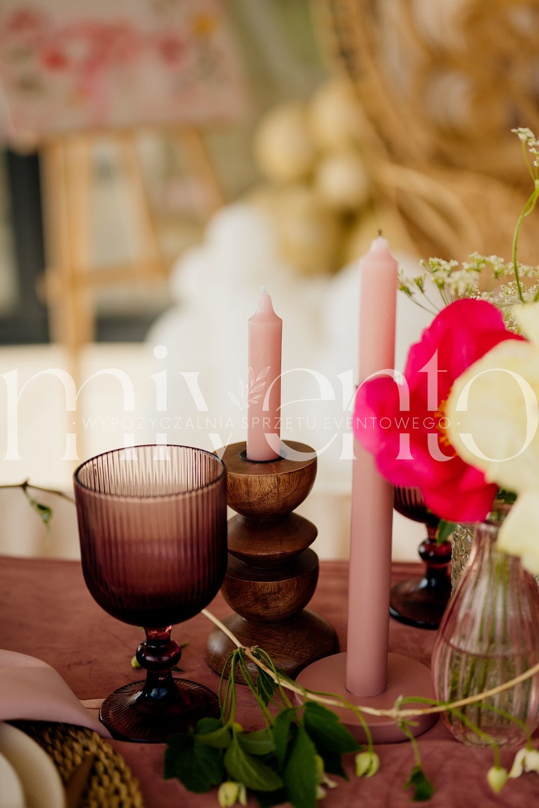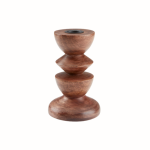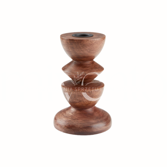 Stylowy drewniany świecznik o rzeźbiarskiej formie, który doskonale podkreśla charakter eleganckich i naturalnych aranżacji. Wykonany z drewna w ciepłym, brązowym odcieniu, stanowi wyrazisty, a jednocześnie ponadczasowy element dekoracyjny.