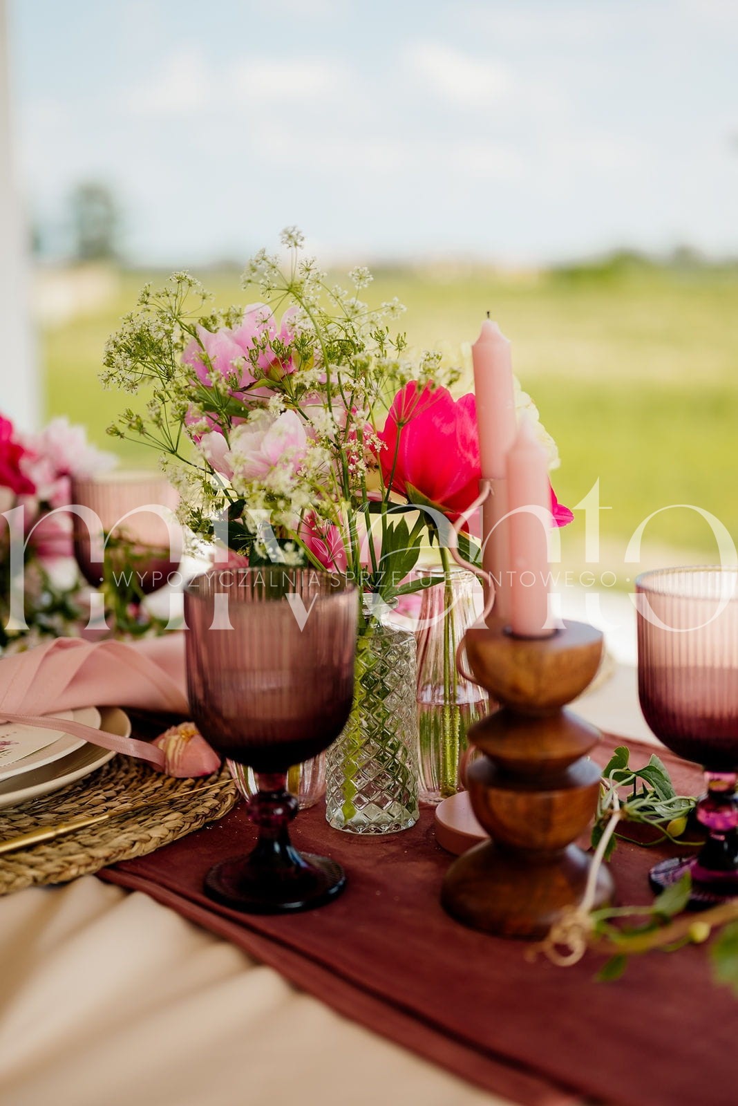 Świecznik pięknie komponuje się zarówno solo, jak i w zestawieniu z innymi elementami dekoracyjnymi (świecami, kwiatami, tkaninami).