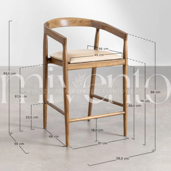 Stylowy drewniany hoker idealny na eventy, strefy lounge, bary i stoiska gastronomiczne. Stabilny, wygodny i elegancki — doskonały do aranżacji przestrzeni eventowych.