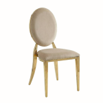 Dodaj odrobinę luksusu do swojego eventu z krzesłem Glamour. Elegancka złota rama i beżowe aksamitne obicie tworzą stylowy i wygodny element na wesela, bankiety i inne uroczystości.
