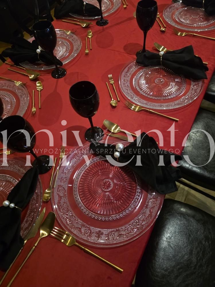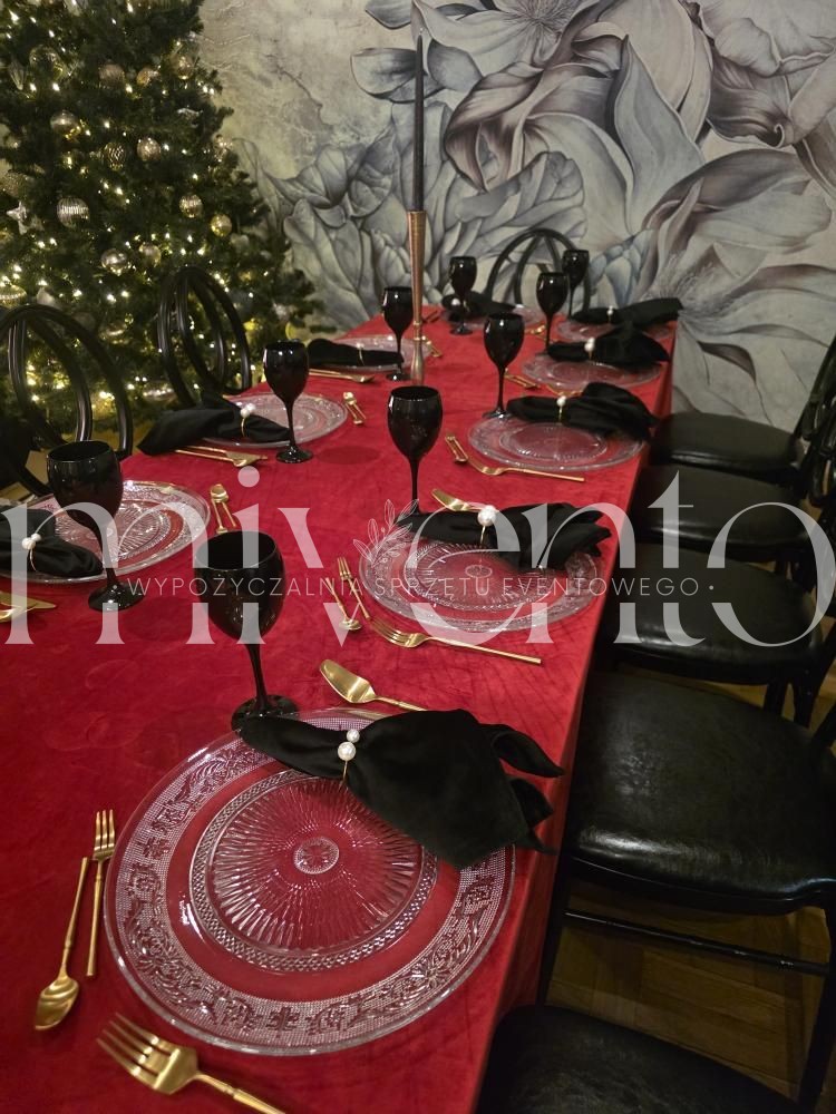 Obrus w intensywnym czerwonym kolorze, wykonany z luksusowej tkaniny velvet. Dodaje elegancji i głębi każdej aranżacji stołu – idealny na święta, uroczystości, wesela i wyjątkowe eventy.