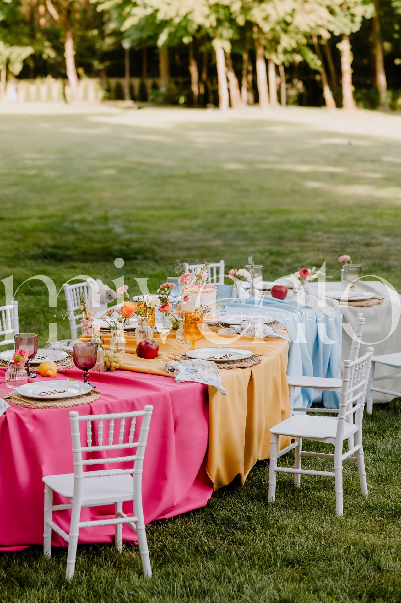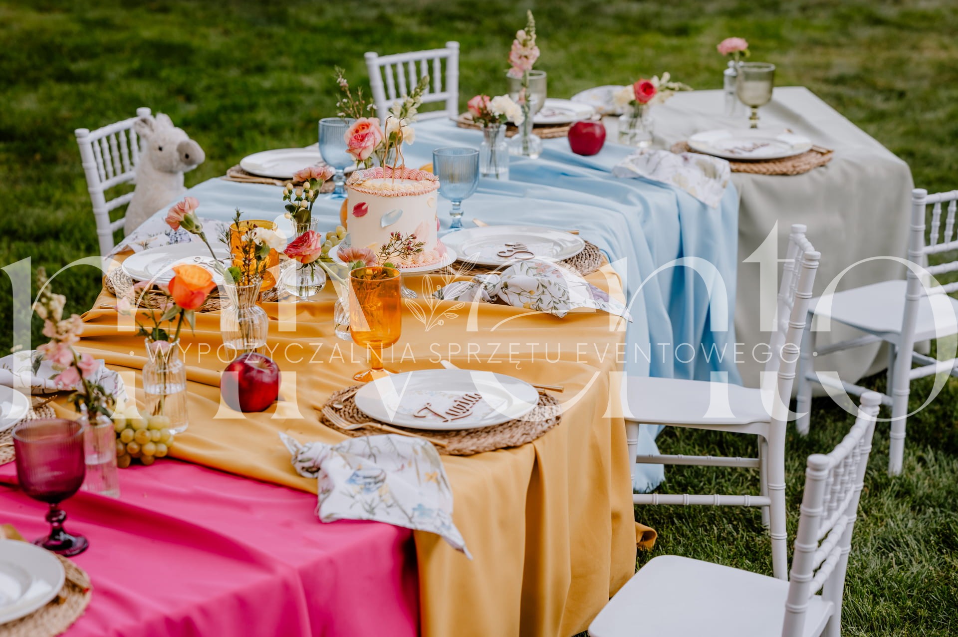 Stół doskonale sprawdzi się podczas animacji, warsztatów kreatywnych, urodzin, pikników, wydarzeń rodzinnych, stref kids-friendly oraz w przestrzeniach opiekuńczych i edukacyjnych. Jest łatwy w ustawieniu, a jego uniwersalny design pasuje do każdej kolorystyki i stylu wydarzenia.