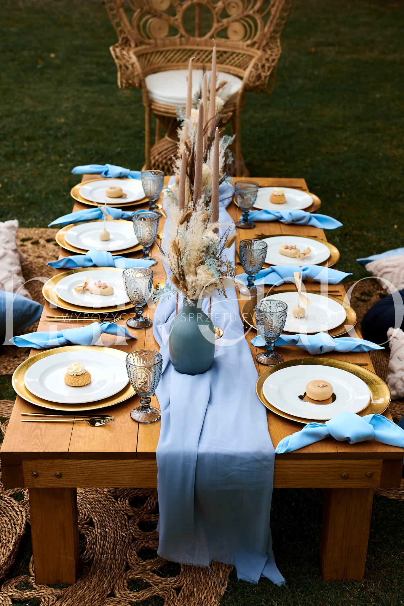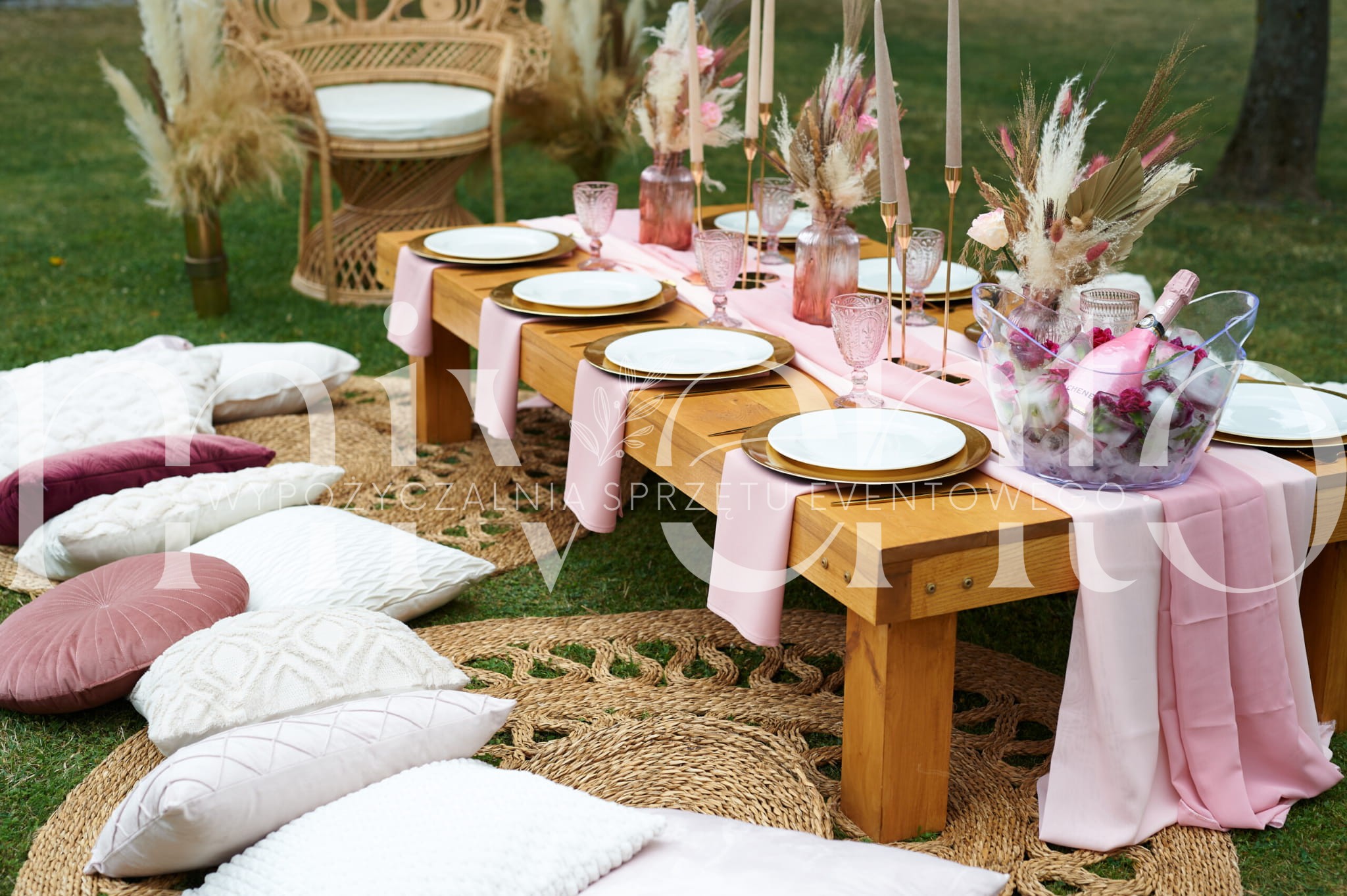 Oferujemy wynajem stołów drewnianych plenerowych, idealny na baby shower, przyjęcia w plenerze.