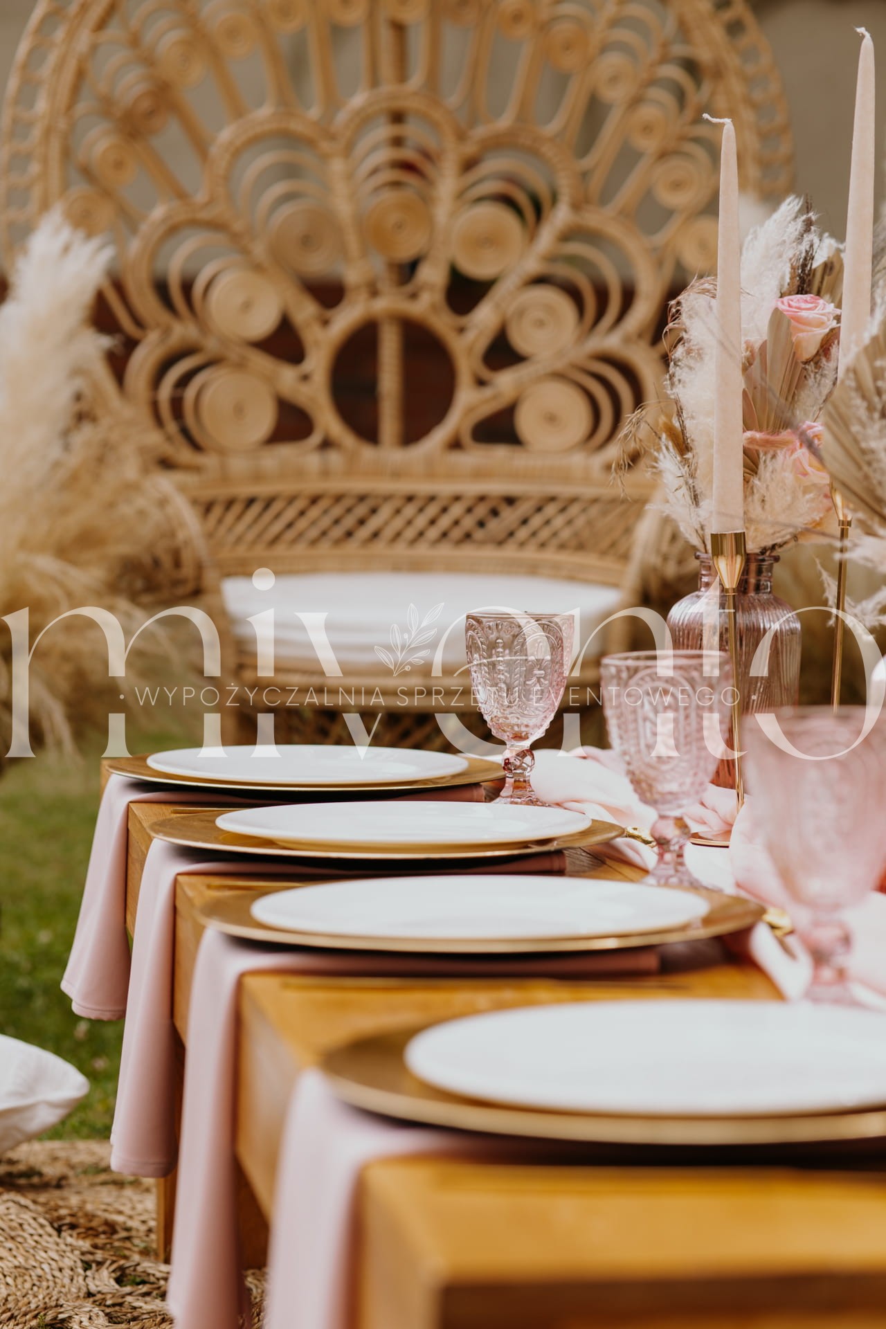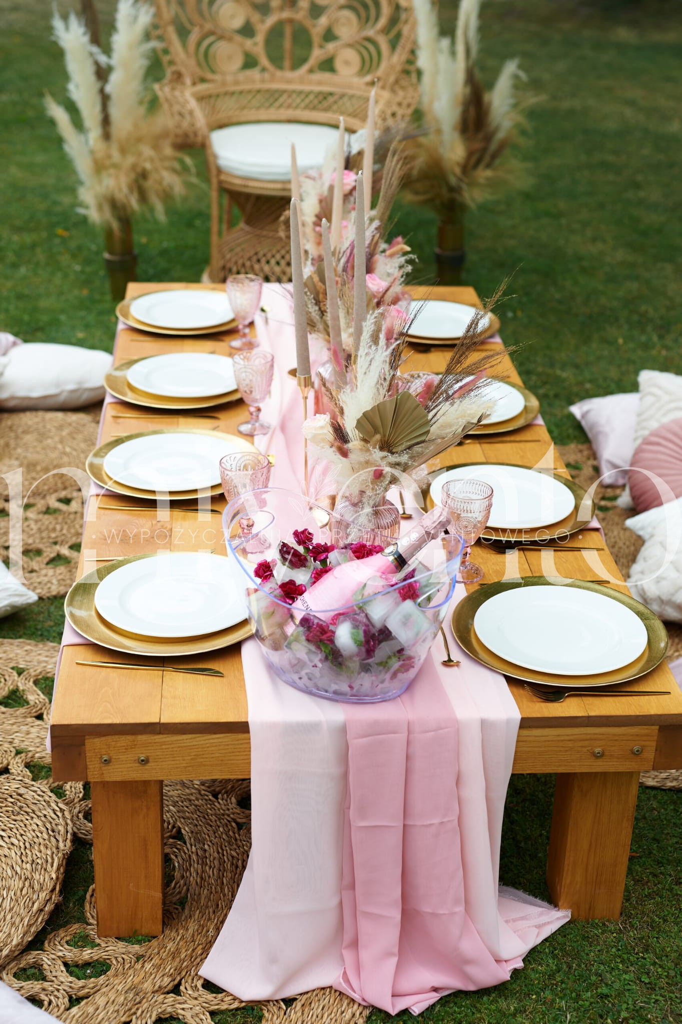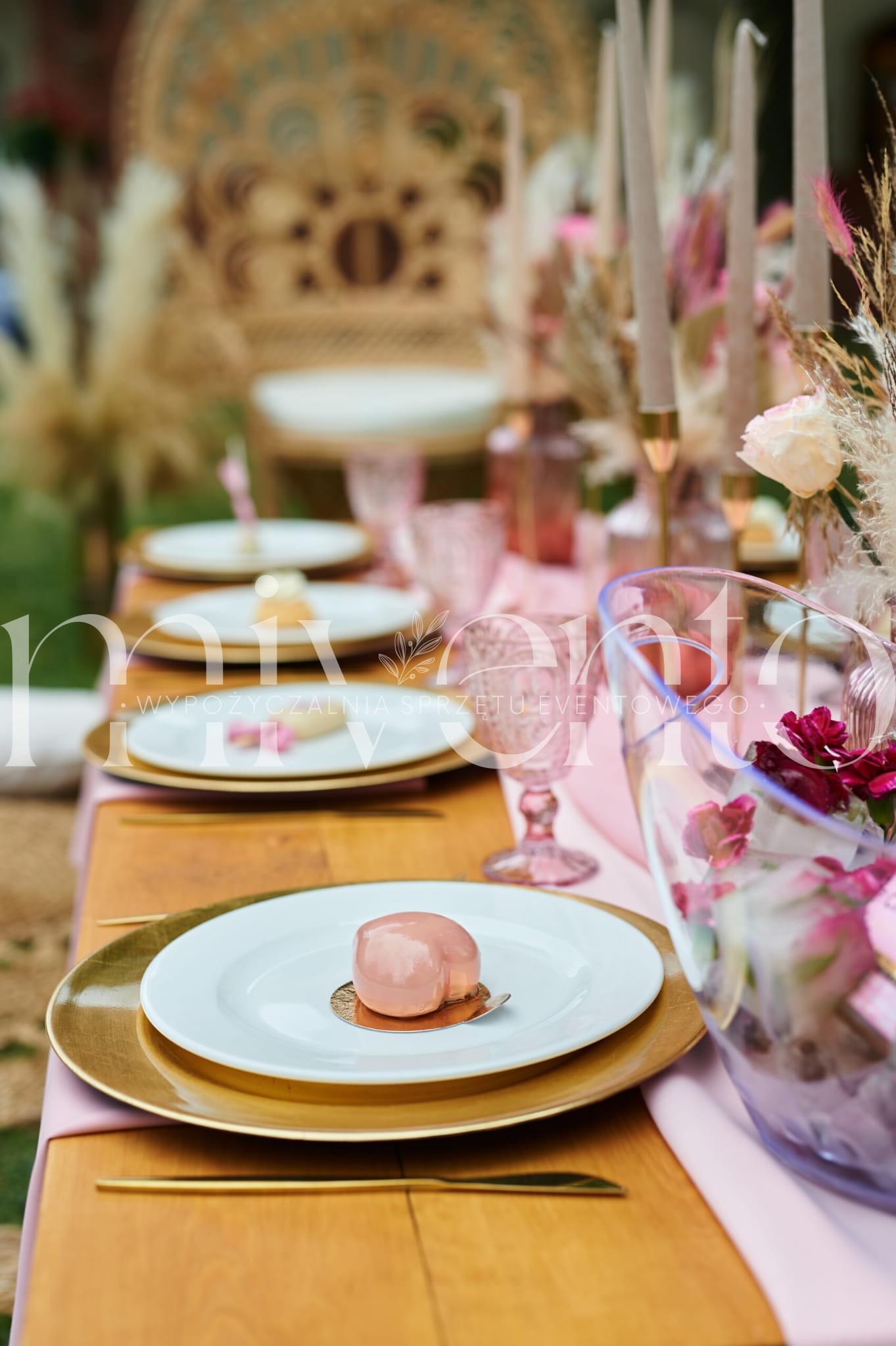 - bieżnik różowy oraz serwety materiałowe w kolorze różu