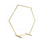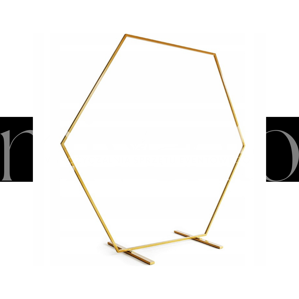 Złoty heksagon to elegancka i nowoczesna dekoracja, która doskonale sprawdzi się jako tło na weselach, eventach, sesjach zdjęciowych i innych uroczystościach. Ta geometryczna konstrukcja o złotym wykończeniu dodaje stylu i wyrafinowania każdej aranżacji. Idealnie nadaje się do stworzenia unikalnej oprawy dla ceremonii ślubnej, strefy zdjęciowej lub jako element dekoracyjny na sali.