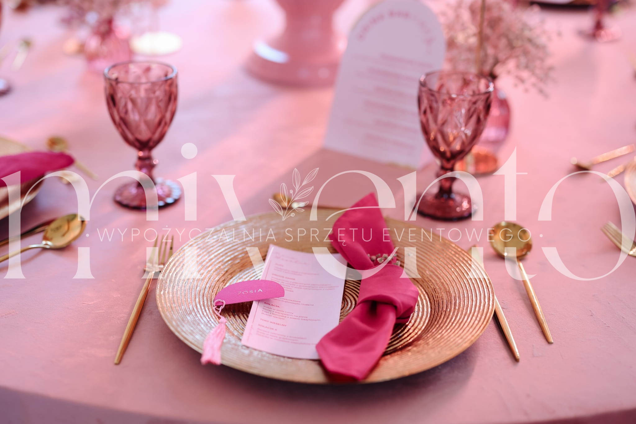 Kieliszki kryształowe różowe – wynajem