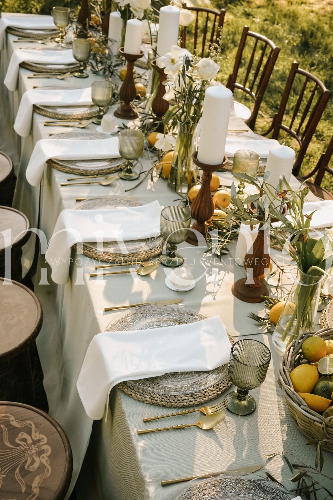 Wynajmij obrus w odcieniu szałwiowym, doskonały na każdą okazję. Jego elegancki kolor harmonijnie wpisze się w każdą aranżację, dodając subtelności i stylu.