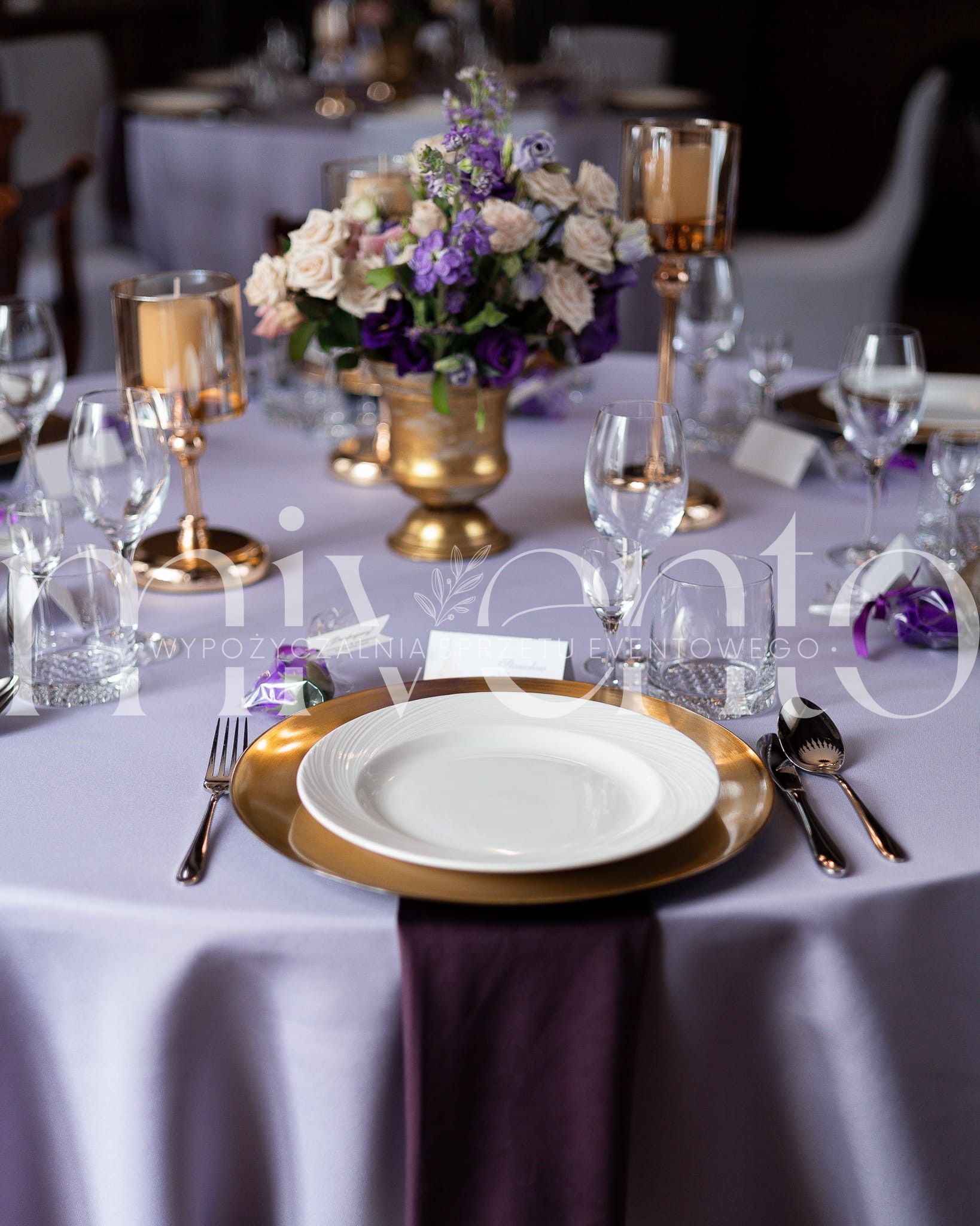 Wynajem serwety bankietowej fioletowej